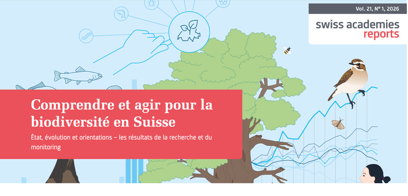 En janvier 2026, l’Académie suisse des sciences naturelles (SCNAT), via le Forum Biodiversité Suisse, a publié le rapport de synthèse « Comprendre et agir pour la biodiversité en Suisse - État, évolution et orientations ».